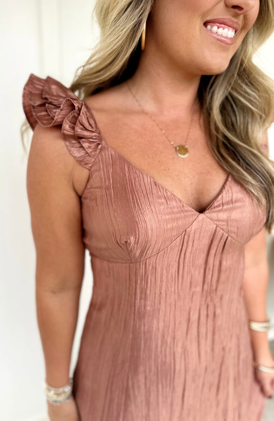 Brick Ruffle Shoulder Dress