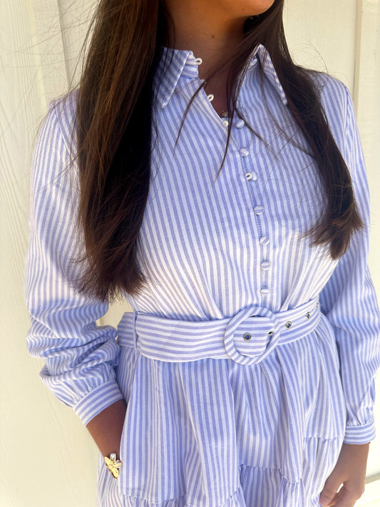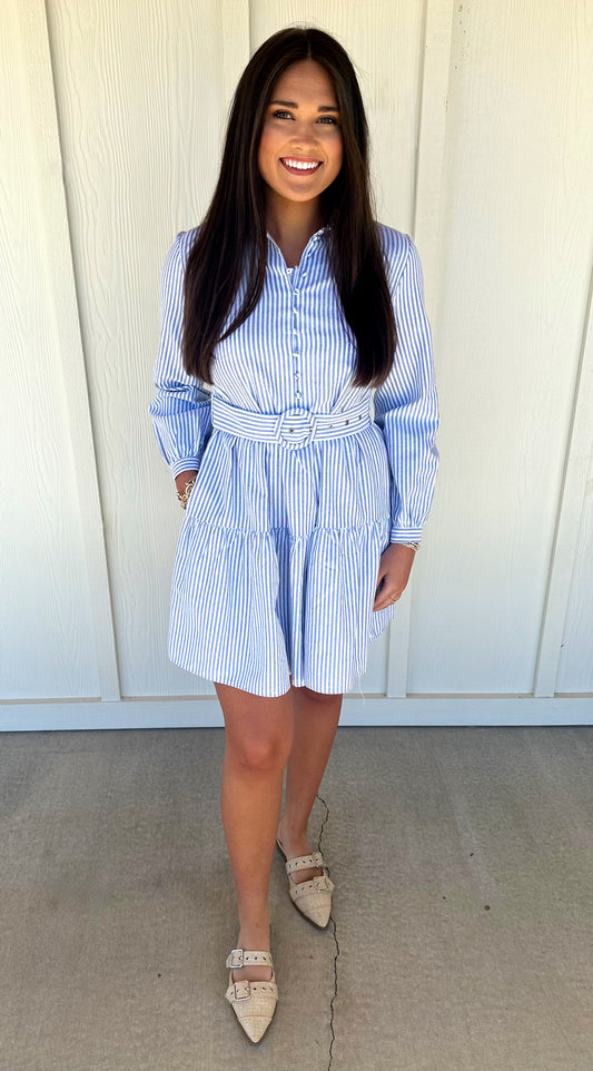 Blue Belted Stripe Dress