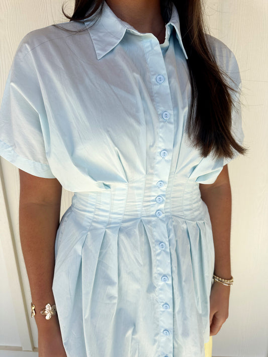 Sky Blue Poly Shirt Dress