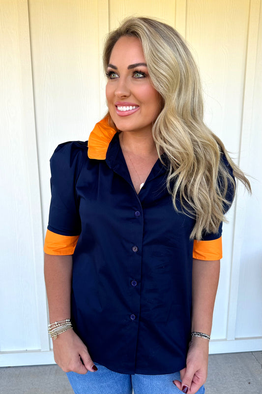 Navy/Orange Ruffle Collar Top