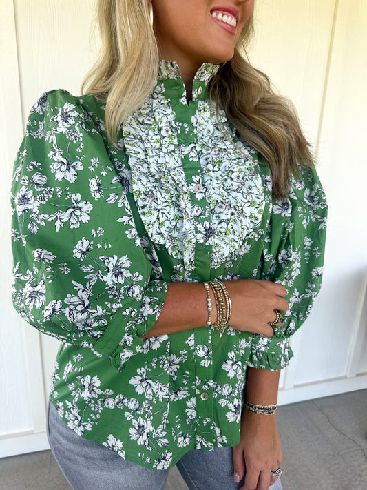 Sold outGreen Ruffle Bib Top
