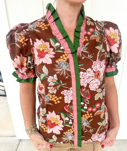 Brown Multi-Floral Top